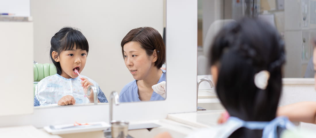 小児歯科の目標は「むし歯のない、きれいな永久歯の歯ならび」を育成すること。